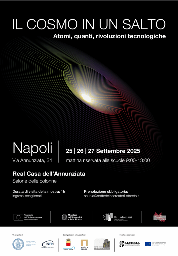 L’inaugurazione, aperta a tutta la cittadinanza, si terrà il 24 settembre alle ore 16.00. La mostra sarà poi riservata in via esclusiva alle scuole nelle mattinate dal 25 al 27 settembre, dalle 09.00 alle 13.00, con attività laboratoriali e percorsi guidati con prenotazione obbligatoria organizzati nell’ambito del progetto STREETS della Notte Europea delle Ricercatrici e dei Ricercatori (ERN 2025).Il pubblico generale potrà invece visitarla nelle giornate del 25, 26 e 27 settembre, dalle 15.00 alle 18.30, e per l’intera giornata del 29 settembre.