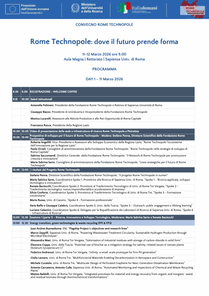 Momento centrale sarà la Tavola Rotonda “Il PNRR come volano di crescita e sostegno all’innovazione”, con la partecipazione di rappresentanti del MUR, della Regione Lazio, del sistema universitario regionale, del mondo industriale e della ricerca pubblica.