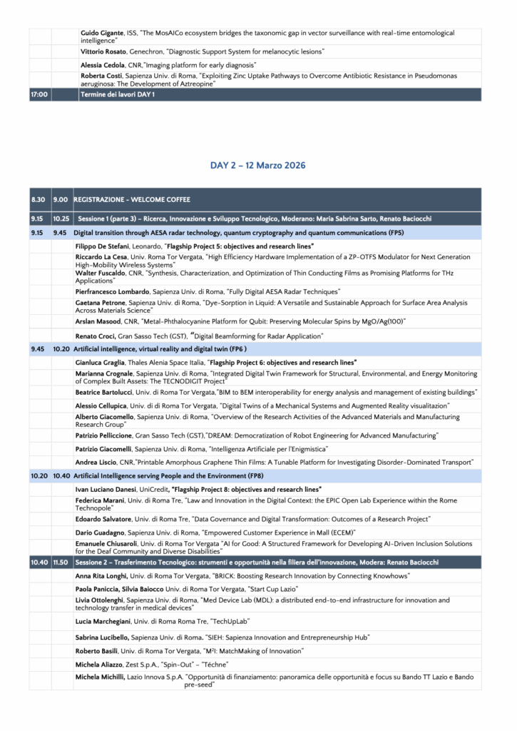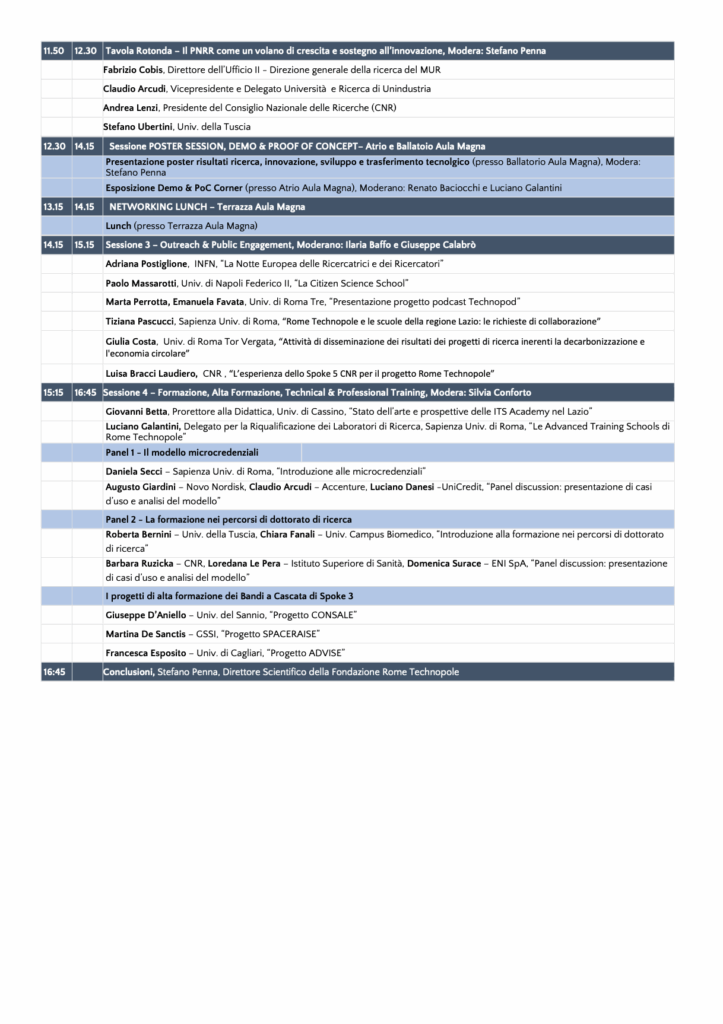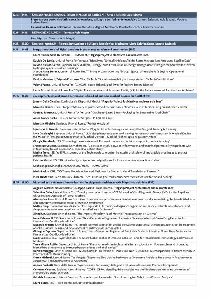 Ampio spazio sarà dedicato alla comunità scientifica di Rome Technopole con: