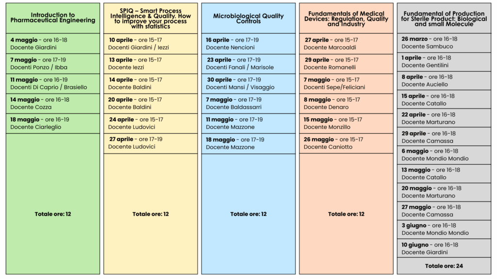 5. Fondamenti della produzione di prodotti sterili: biologici e piccole molecole (Fundamental of Production for Sterile Product: Biological and Small Molecules) – Coordinamento: Università degli Studi di Roma Tor Vergata (ISCRIZIONE ENTRO: 23 marzo 2026)